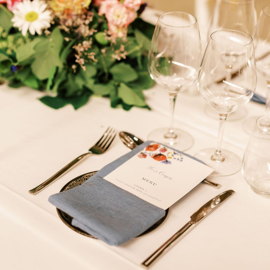 Hos JA Wedding Rentals kan du även hyra porslin, glas och bestick för att skapa en stilfull helhet. Du väljer själv om du vill hyra enstaka delar eller kombinera flera dukningsdetaljer – alltid med fokus på ett elegant och sammanhållet uttryck.